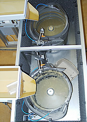 Vorratsbunker für die Speicherung von Werkstücken. Sie reduzieren den Nachfüllaufwand auf ein Minimum mit größtmöglicher Teileschonung.